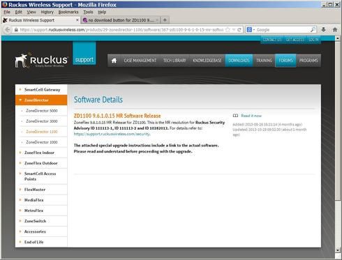 The pdf ZD1100_961_MR_Upgrade.pdf contains a link to download the firmware but the linked page doesn't contain a download button only a link back to the original pdf.