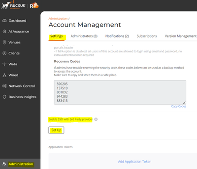 RuckusOne has introduced Single Sign-On feature for Administration. With this, we can make use of Azure AD credentials to login to RuckusOne wth SAML as the supported protocol.To Enable SSO for Administrative Access:Navigate to Administration >> Sett...